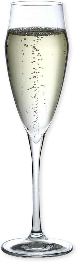 The 18 cl EGO flute glasses by RCR, presented in a set of 6, are created to transform every toast into a special moment. Characterized by laser points on the bottom that intensify the spectacle of the perlage of the sparkling wines, these glasses combine technological innovation and refined design. Made of lead-free crystalline glass, they guarantee not only a visually fascinating tasting but also an elevated taste experience. Perfect for festive occasions, these glasses are also practical, thanks to their compatibility with the dishwasher.